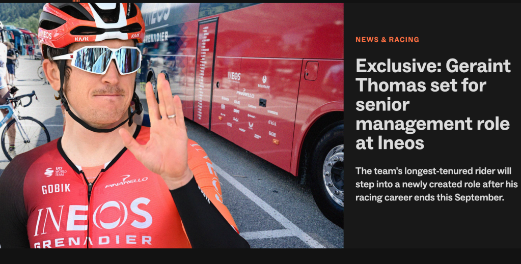 Geraint Thomas looks likely to move into a management role with Ineos Grenadiers once he retires at the end of the season.